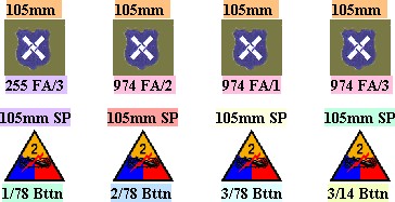 Make counters for each firing artillery unit with the unit's identification. This way it's easy to keep track of where the artillery lands. I personalize the artillery counters with a graphic of the real Division. Sample showing counters for US XII Corps and US 2nd Armored division: